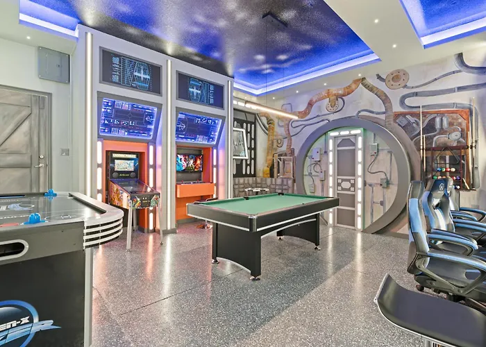 Die Villa befindet sich 10 Minuten mit dem Auto vom Makó sowie lediglich 20 Minuten zu Fuß vom Discovery Cove entfernt. Die Villa in Orlando ist circa 4,1 Kilometer vom Riesenrad The Orlando Eye entfernt.