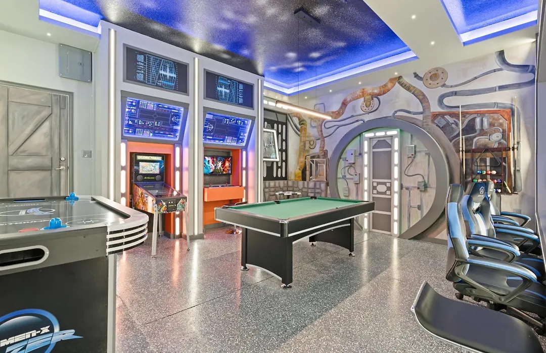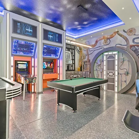 Há cozinha totalmente equipada com refrigerador e forno, bem como comodidades para refeições no quarto, tais como máquinas de café/chá. Os hóspedes podem desfrutar de uma refeição no a doceria Ginther's Swirls Ice Cream, localizado a uma caminhada desta acomodação. O aeroporto em Orlando Internacional pode ser alcançado em 23 minutos de carro. A área também é popular para bilhar.